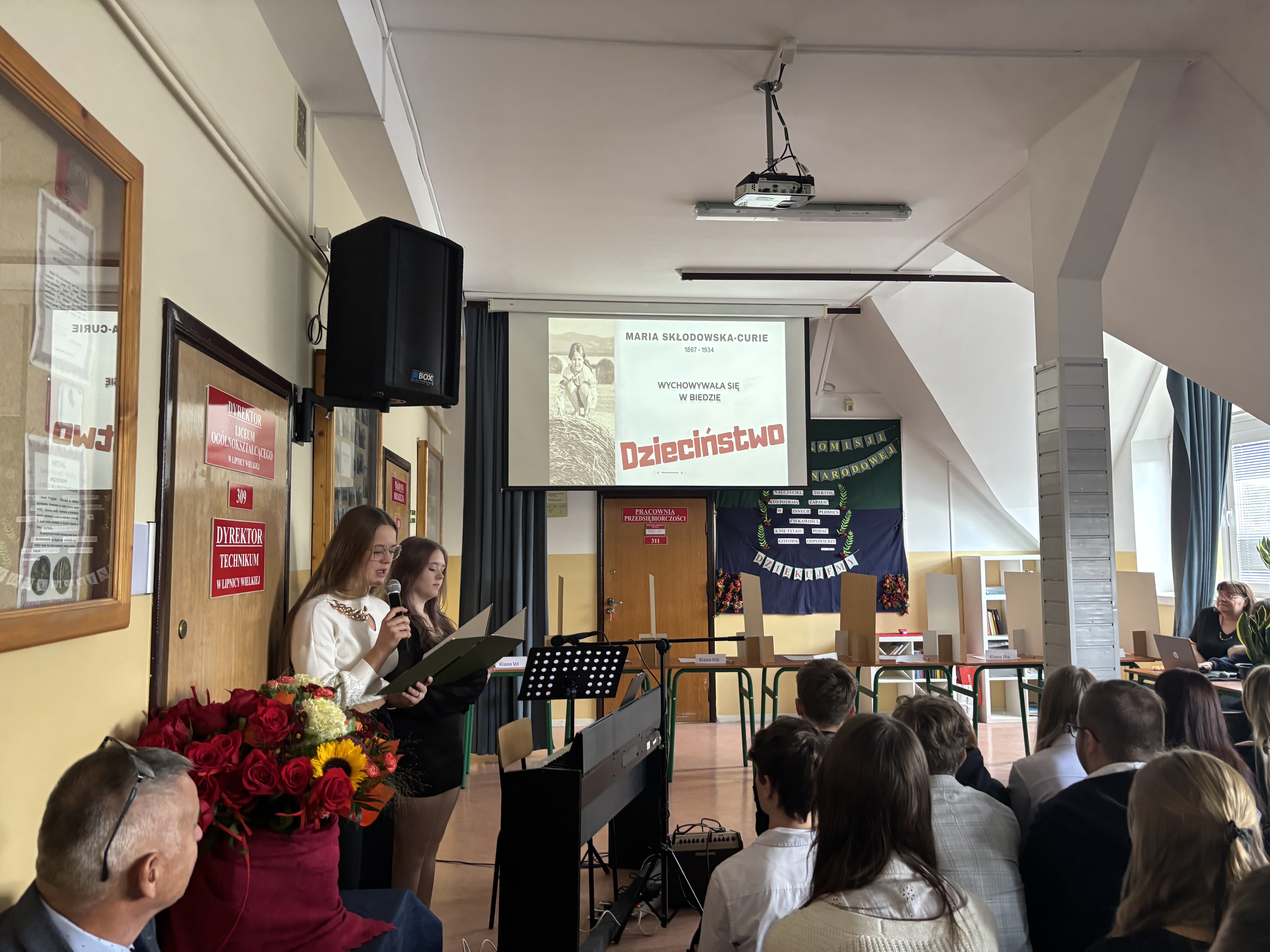 Święto Edukacji Narodowej to coroczne wydarzenie w naszej szkole. Obchodzimy je zawsze uroczyście, żeby podkreślić wartość tego dnia. Edukacja to zawsze inwestycja w siebie, w jakość życia oraz całe społeczeństwo, a świadomość tego jest szczególnie widoczna w szkole, gdzie rozpoczyna się przygoda z nauką. Dzięki wiedzy i umiejętnościom młodzi ludzie mają konkretny wpływ na swoją teraźniejszość i przyszłość – dlatego w tym roku nasi uczniowie starali się pokazać postaci, które dzięki nauce zmieniły swoją rzeczywistość. Całość wydarzenia uświetnili uczniowie z klasy pierwszej i drugiej, dając piękny popis wokalu i muzyki, przy których przewodniczący klas wręczyli nauczycielom i dyrekcji kwiaty.