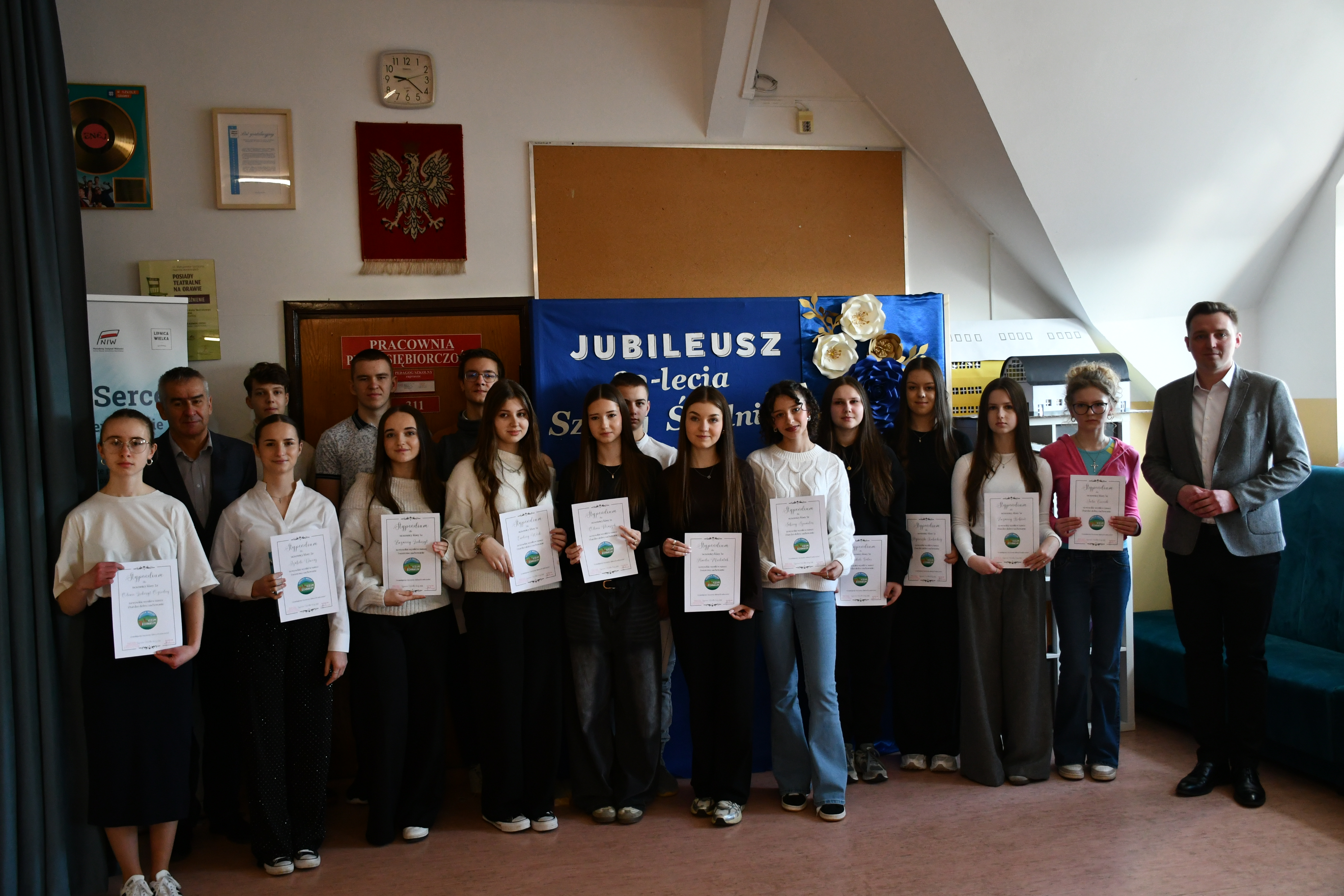 Pan Mateusz Lichosyt Wójt Gminy wręczył Stypendia Prezesa Rady Ministrów Annie Lichosyt i Michałowi Kaczmarkowi. Ze względu na obchody 30-lecia szkół maturalnych uczniowie nie wzięli udziału w uroczystości wręczenia tych stypendiów w Krakowie organizowanym przez Małopolskiego Kuratora Oświaty.