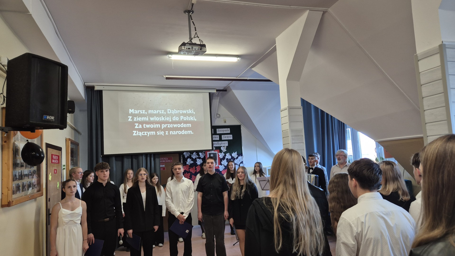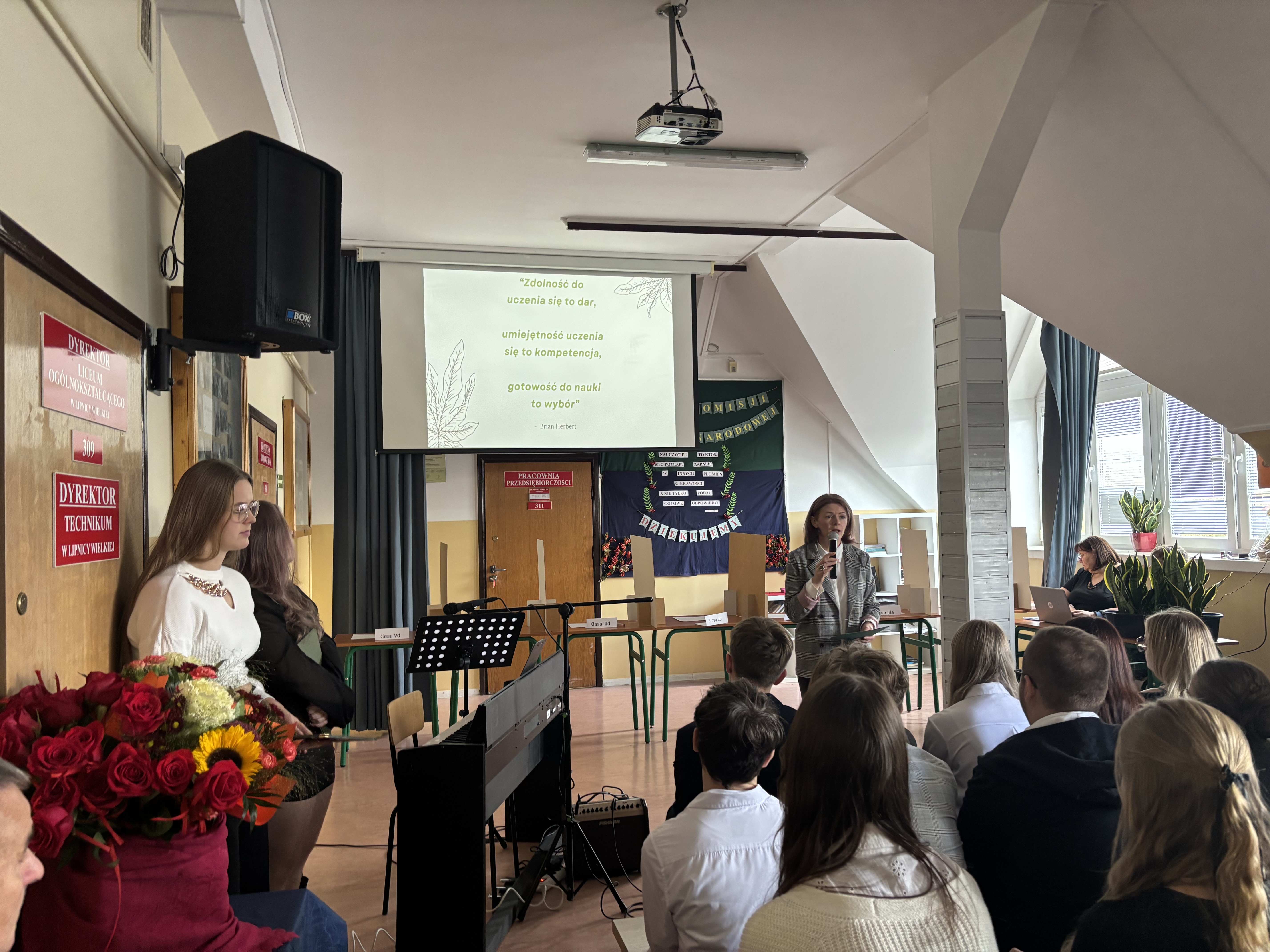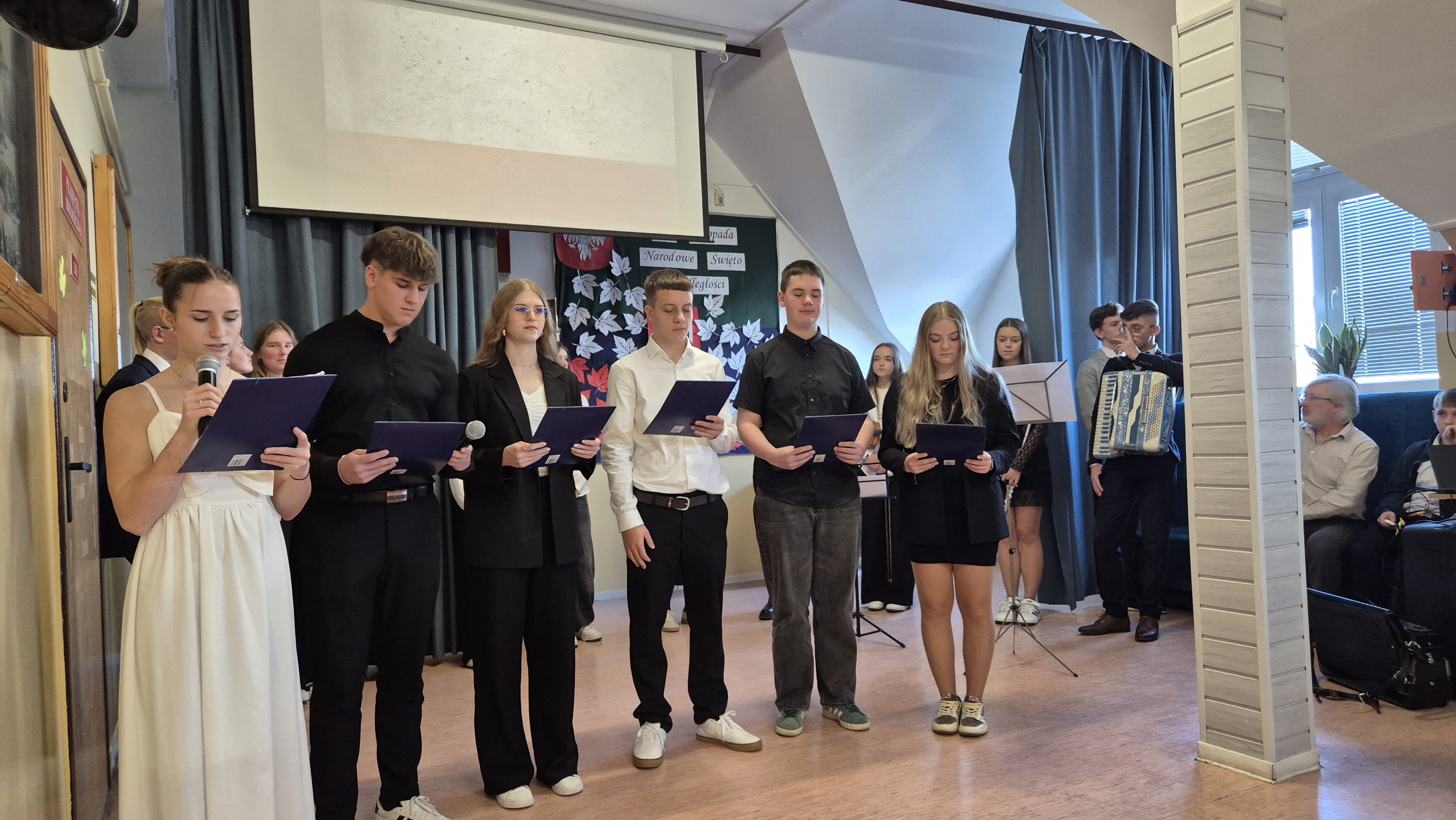 Święto Edukacji Narodowej to coroczne wydarzenie w naszej szkole. Obchodzimy je zawsze uroczyście, żeby podkreślić wartość tego dnia. Edukacja to zawsze inwestycja w siebie, w jakość życia oraz całe społeczeństwo, a świadomość tego jest szczególnie widoczna w szkole, gdzie rozpoczyna się przygoda z nauką. Dzięki wiedzy i umiejętnościom młodzi ludzie mają konkretny wpływ na swoją teraźniejszość i przyszłość – dlatego w tym roku nasi uczniowie starali się pokazać postaci, które dzięki nauce zmieniły swoją rzeczywistość. Całość wydarzenia uświetnili uczniowie z klasy pierwszej i drugiej, dając piękny popis wokalu i muzyki, przy których przewodniczący klas wręczyli nauczycielom i dyrekcji kwiaty.
