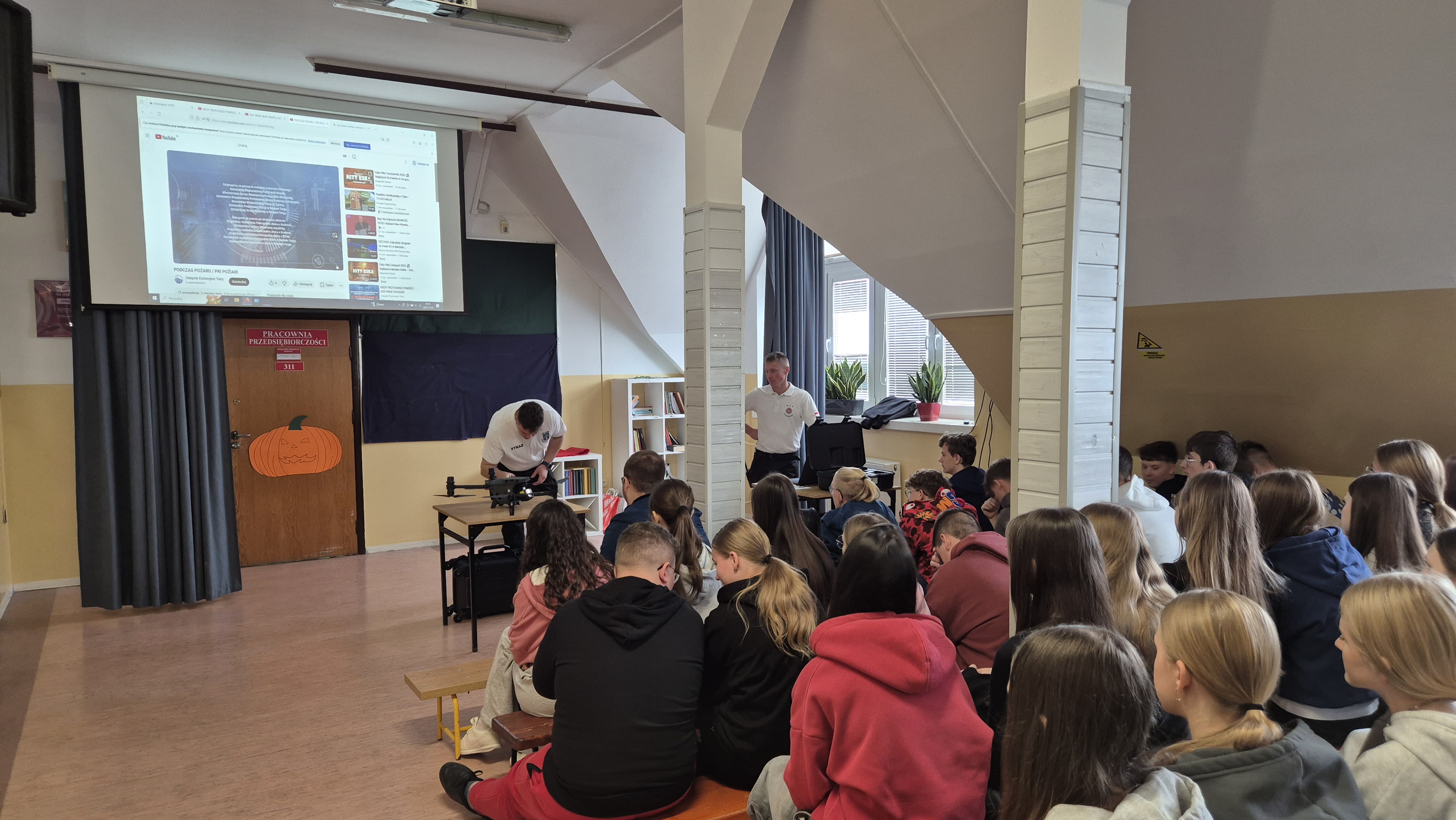 W ramach projektu pn „Razem Przeciwko Skutkom Zmian Klimatu Na Pograniczu Polsko-Słowackim” współfinansowanego przez Unię Europejską z Europejskiego Funduszu Rozwoju Regionalnego w ramach Interreg Polska-Słowacja 2021 – 2027 nasi uczniowie wzięli udział w prelekcji na temat zagrożeń czasu pokoju. Zapoznali się z nowoczesnym sprzętem będącym na wyposażeniu Straży Pożarnej w Lipnicy Wielkiej Centrum oraz zasadami postępowania w czasie zagrożeń.