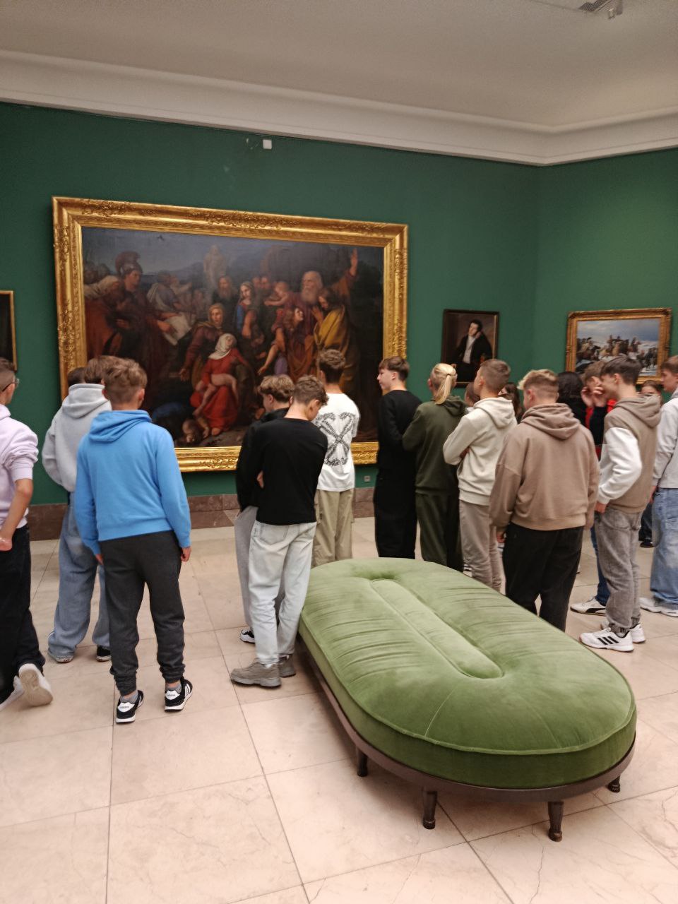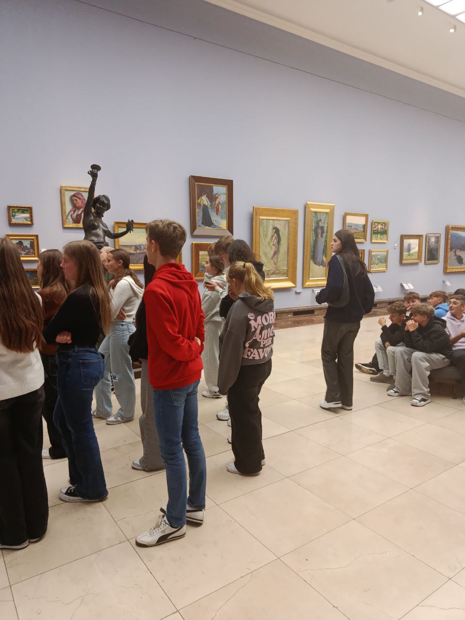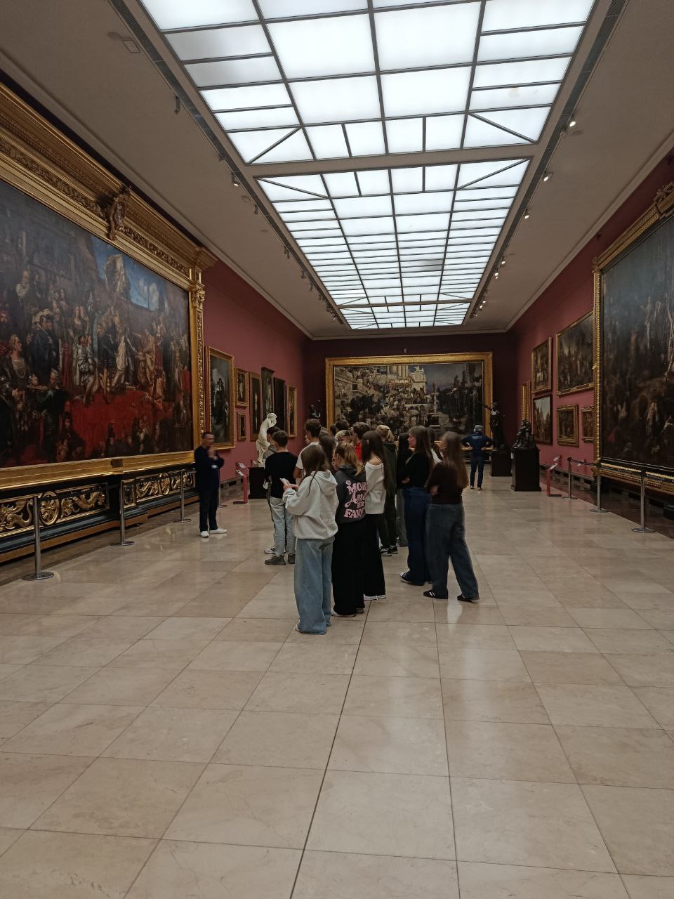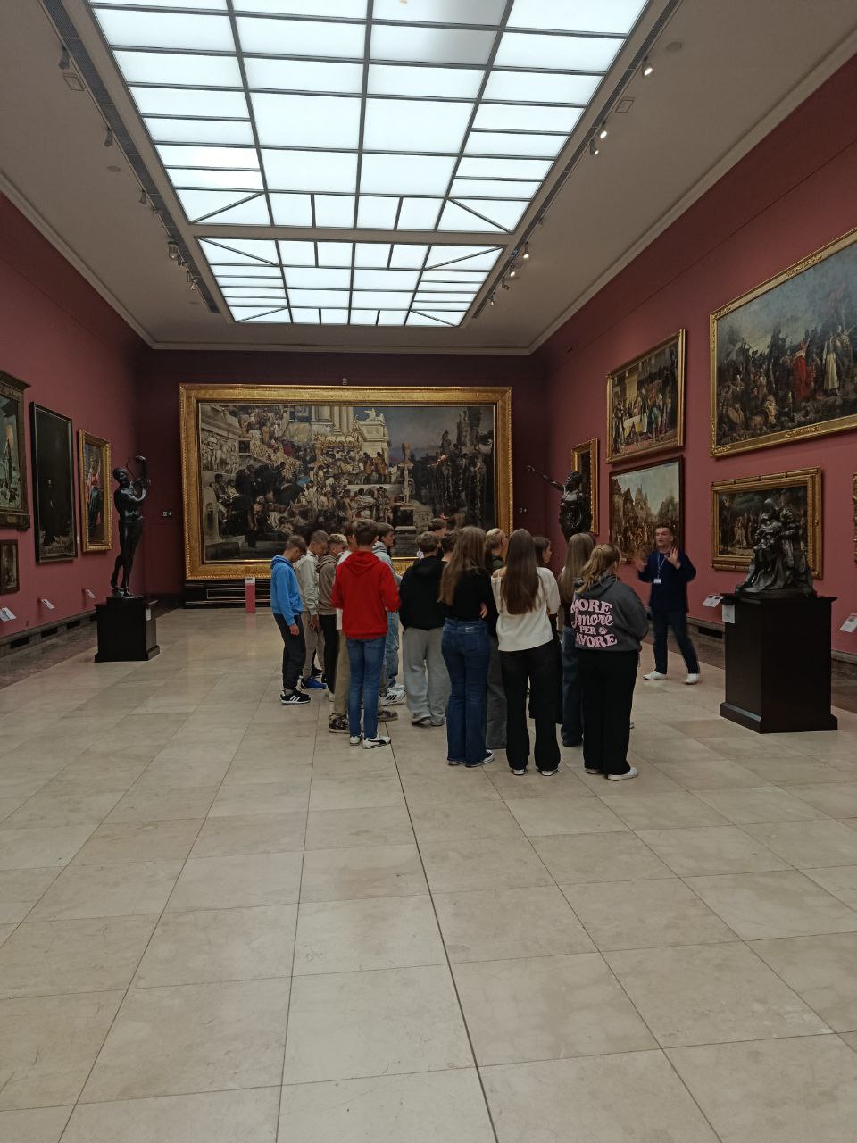 Po seansie uczestnicy udali się do Sukiennic, gdzie w Muzeum Narodowym oglądano wystawę obrazów z XIX wieku. O dziełach sztuki w ciekawy sposób opowiadali miejscowi przewodnicy, a olbrzymie rozmiary malowideł wywarły na zwiedzających wielkie wrażenie. W galerii nie zabrakło takich nazwisk jak Matejko, Chełmoński, Podkowiński czy Wyczółkowski – którzy są szczególnie reprezentatywni dla realizmu czy symbolizmu. Wystawa na pewno zapadnie w pamięć, a niektórym może nawet ułatwi zdanie matury.